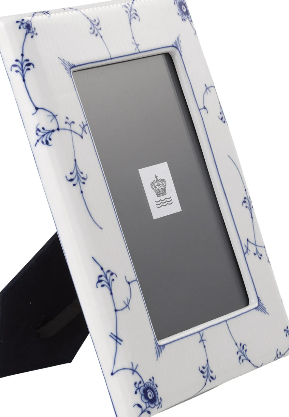 Musselmalet Riflet billedrammen giver dine minder et strejf af håndmalet elegance. Det klassiske, musselmalede mønster fra 1775 snor sig omkring rammens front og sider, og skaber en perfekt ramme for for dine fotografier.