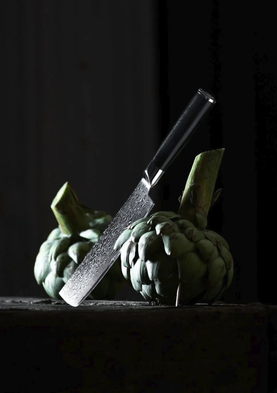 Kniven består af 67 lag stål og en kerne af VG-10 stål for ultimativ skarphed og holdbarhed. Det her er grøntsagskniven som du kan have glæde af mange år endnu.