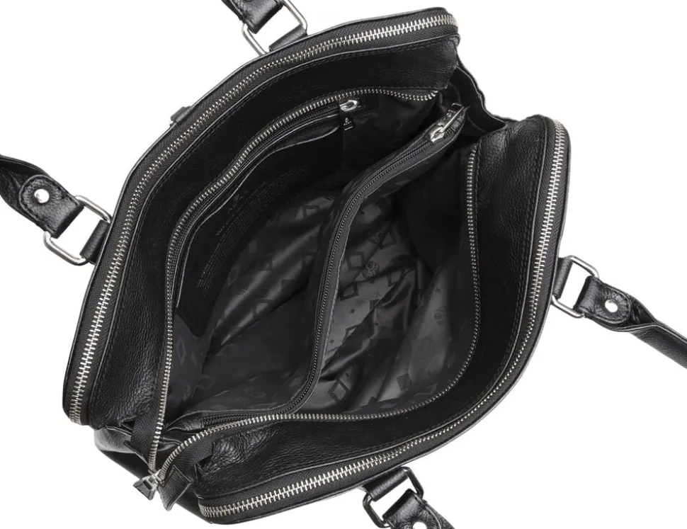 Gerda jobtaske i Napoli Kalveskind. Tasken har to gode hanke og en aftagelig skulderrem, som kan justeres i længden. På fronten er der en stor lynlåslomme. Tasken er delt op i 3 som hver lukkes af en lynlås. Inden i er der god plads, en lynlåslomme, en læderlomme til en mobil samt foret lomme til PC og en tablet. Vi anbefaler Adax protectionsspray.