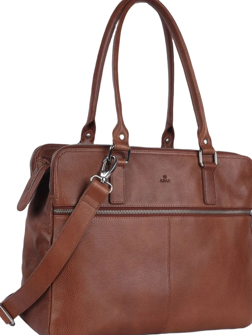 Gerda jobtaske i Napoli skind fra Adax. Tasken har to lange hanke. Tasken lukkes i toppen og på fronten er der en stor lynlåslomme. Tasken er delt op i 3 rum med hver deres lynlås der er god plads i de forskellige rum. Der er bla. en lynlåslomme, en læderlomme til en mobil samt foret lomme til PC og en tablet.