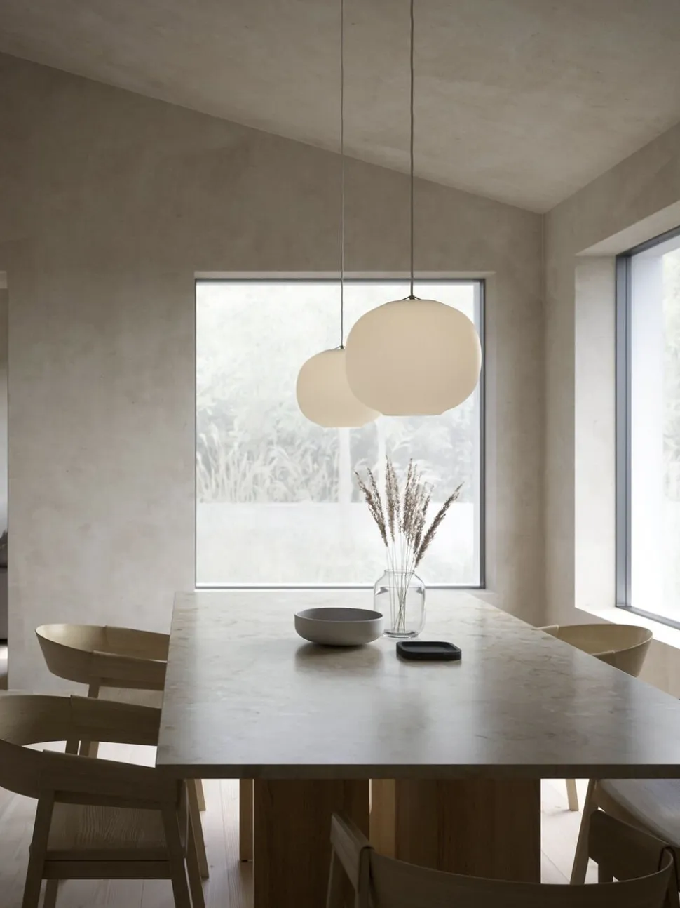 Navone er designet af den danske tegnestue Mavro/Lefèvre. Skærmens dominerende form er blød og rund, men den meget subtile buede bund tilføjer en ny interessant dimension, der forvandler lampen til mere end blot en kugle. Messingdetaljerne tilføjer et moderne touch og understreger lampens suspenderede lethed.