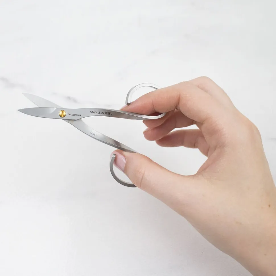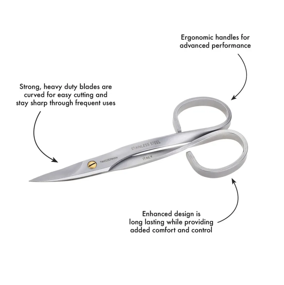 Et elegant design med med ekstra skarpe, tynde spidser og et buet skær, som sikrer en præcis klipning af neglerødder og flossede neglebånd. Rustfrit stål.