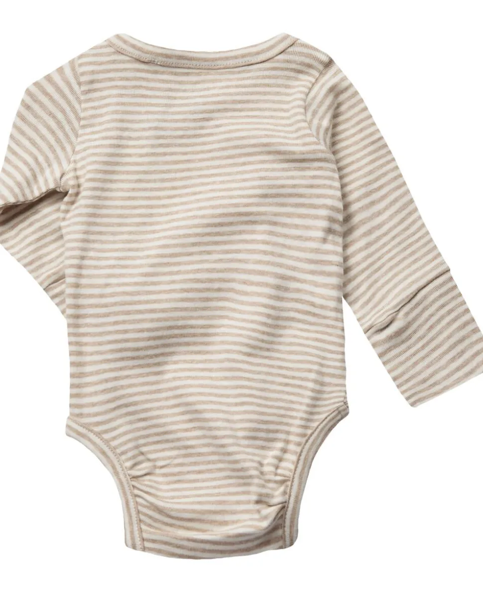 Body fra Magasin du Nord Collection i den blødeste kvalitet af 100% økologisk bomuld med GOTS-certificering. Bodyen er enkel i modellen med smalle striber, lange ærmer, komfortable ribkanter, ’slå om’-trykknaplukning på fronten samt trykknapper i kilen. En skøn body i den lækreste kvalitet.