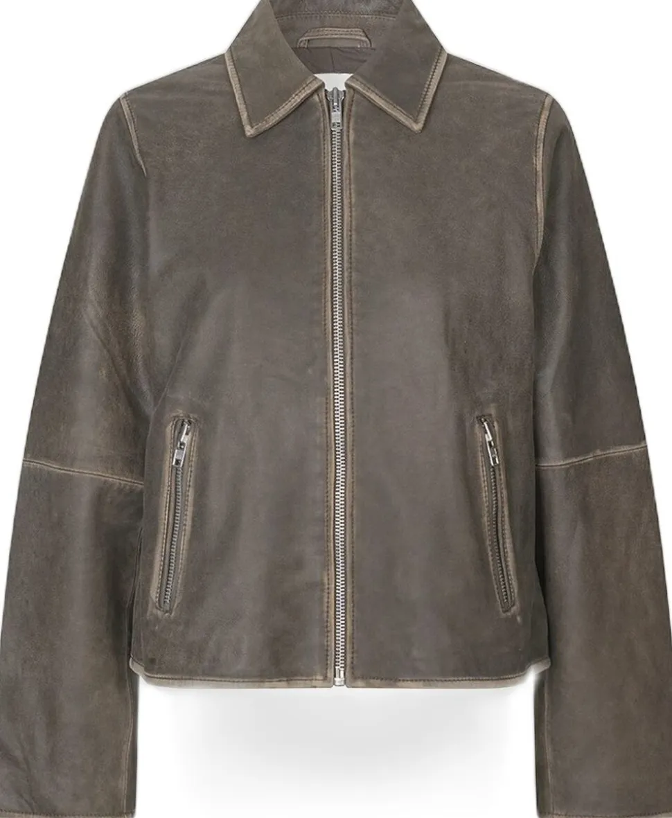 Læderjakke med løs pasform i 100% lamme læder. NimaMD jacket har en lynlås lukning, skjortekrave og to forlommer.