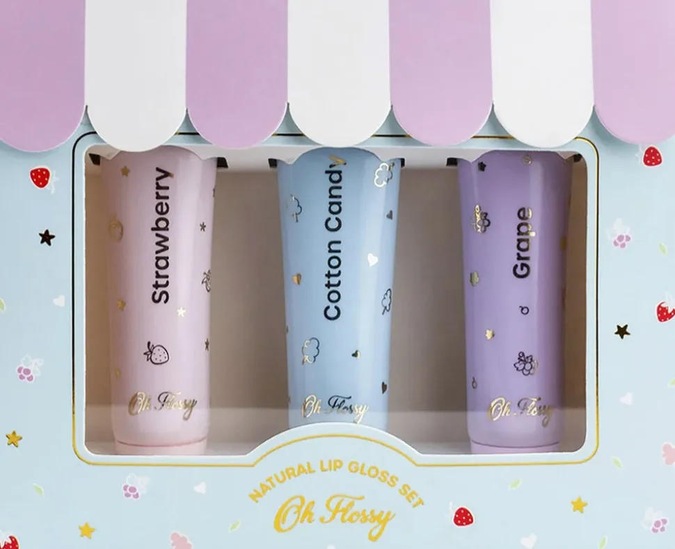 En blød og behagelig lipgloss, der er let at påføre. Duft og smag fra naturlige ingredienser og en smule frugt- og grøntsagsbaseret farve, der ikke pletter. Den søde æske er designet af Rosa Ronco.