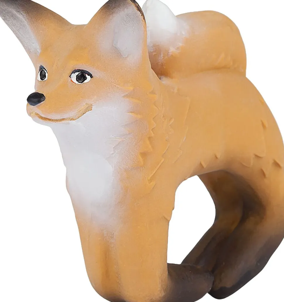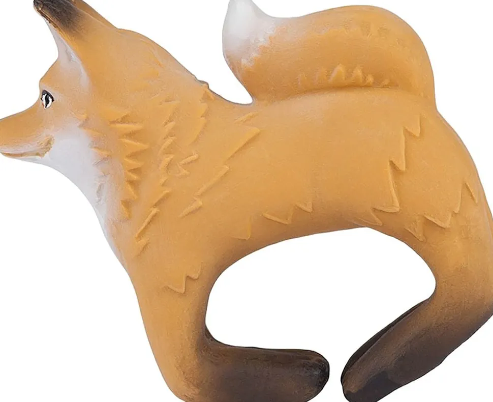 En sød lille ven udformet som et armbåndBlød og let at gribe om og til tage rundt om håndleddet. Små børn elsker teksturen af Hevea gummi. Det er dejligt at bide i når gummerne begynder at klø, når den første tand skal frem. Håndlavet i 100% naturlig Hevea gummi og håndmalet med naturlige pigmenter udvundet fra planter. Produceret uden hul, så den kan komme med i bad.