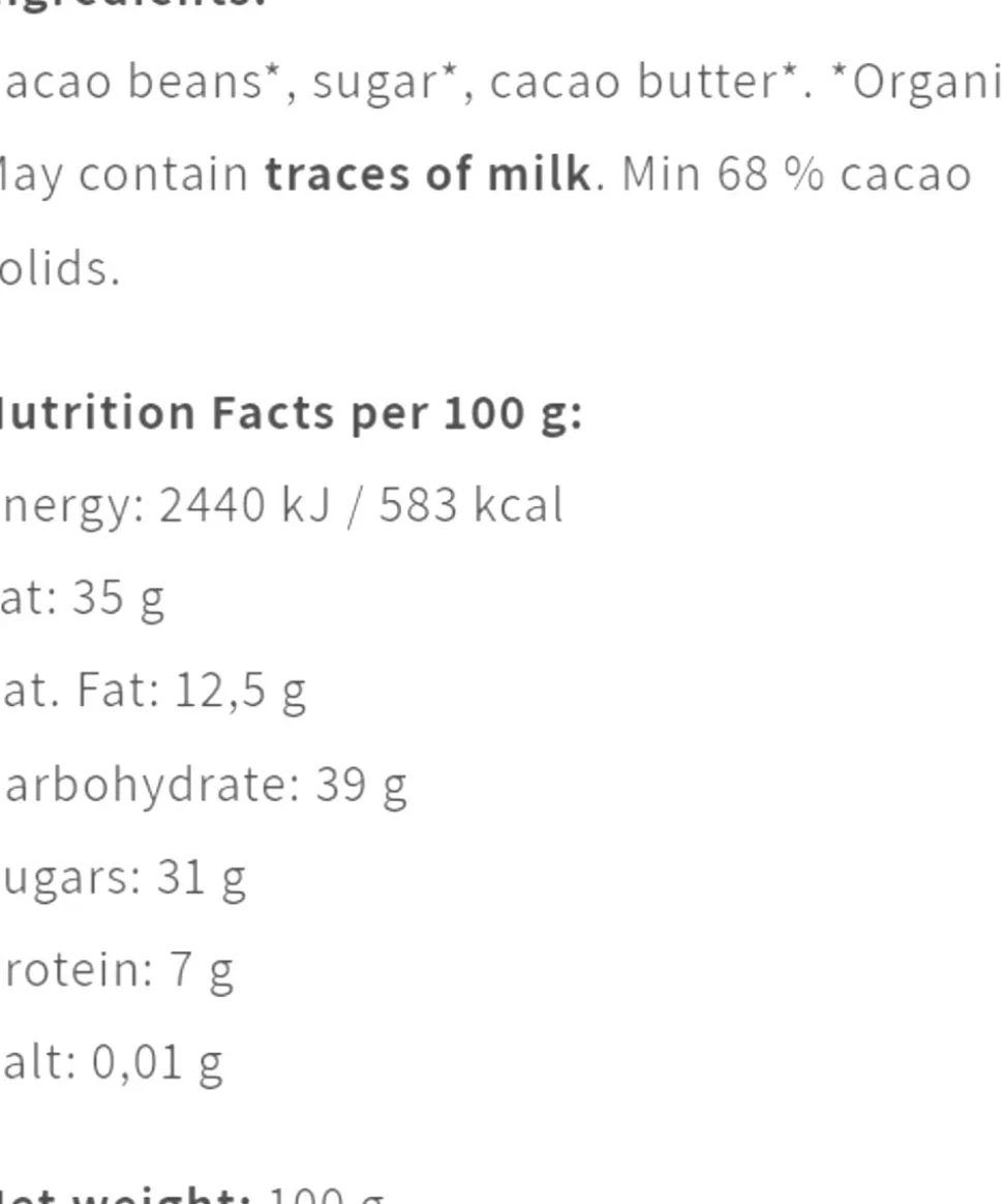 Organic O’payo 68% 100 g økologisk