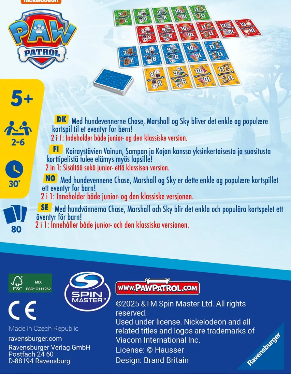 Paw Patrol Elevens er et underholdende kortspil med enkle regler for hele familien Læg smart nummerkort ud, bloker de andre spillere, og så er det pludselig slu t: Det er Paw Patrol Elevens Ren sjov for hele familien