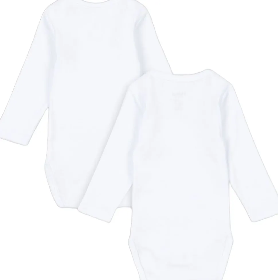 Blød bodysuit i økologisk bomuld med lange ærmer. Fremstillet i en fleksibel ribbe med en praktisk kuverthalsfunktion, der gør det nemt at tage den af og på, samt nemme trykknapper mellem benene til bleskift