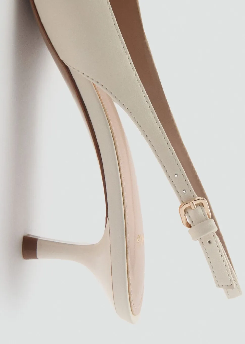 Imiteret læder, killingehæl, spids, 5 cm hæl, spænde, indvendig foring
