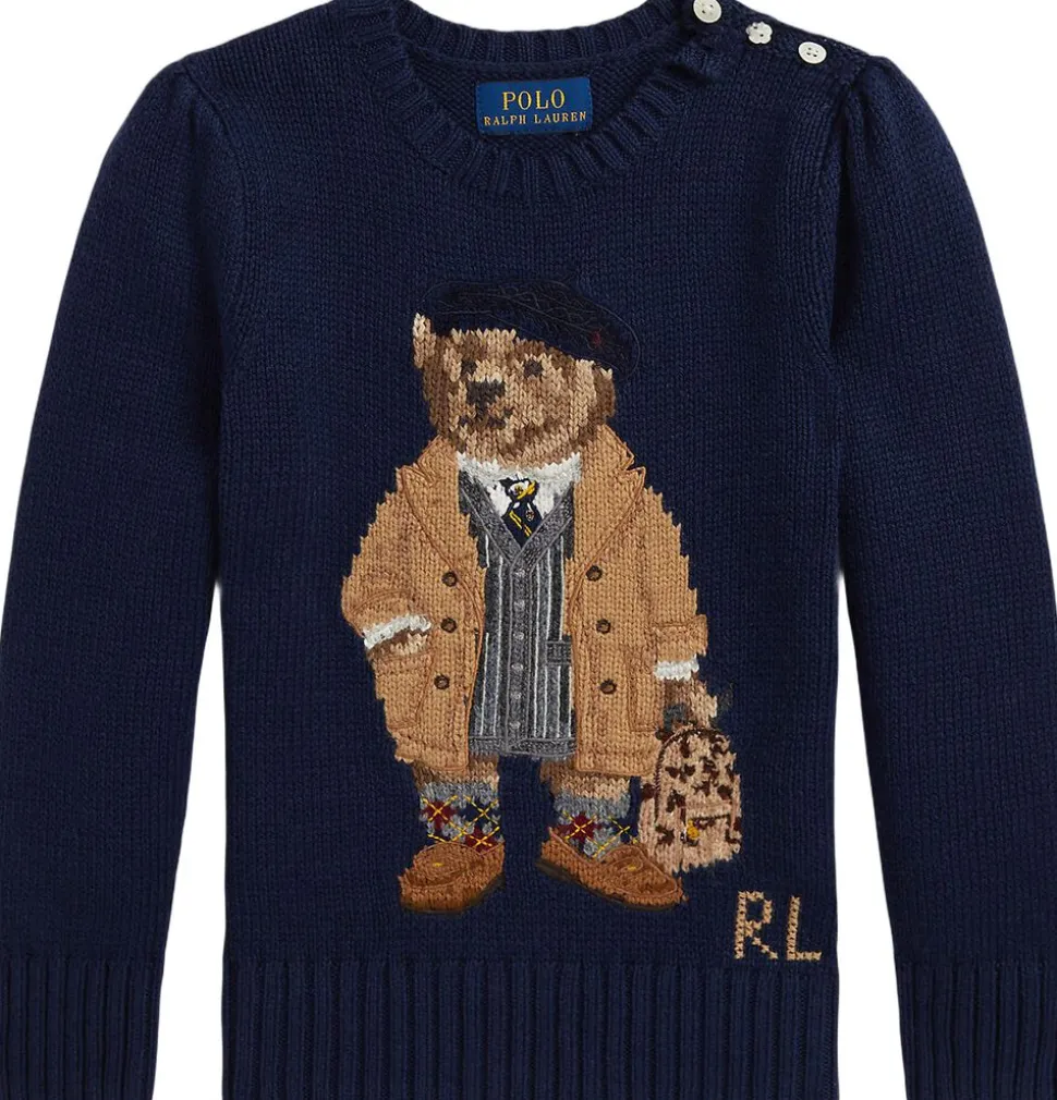 Denne sweater med rund hals bruger mere end 20 forskellige garner til at skildre vores elskede Polo Bear klædt i et signatur Ralph Lauren-look