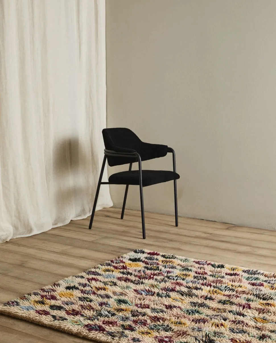 POPPY-gulvtæppet er lavet af en uldblanding. Tæppet er prydet med et livligt og farverigt mønster, der straks tilføjer varme og personlighed til et rum. Materialets taktile natur kombineret med det grafiske mønster resulterer i et udfordrende, men afbalanceret Design, der giver ethvert rum et blødt element af kontrast. ##tæppet kan kaste fibre, hvilket er karakteristisk for