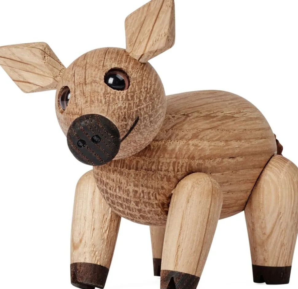 Poppy er en livlig og legesyg trægris, der bringer glæde til ethvert hjem. Med sin krøllede hale og sprudlende energi minder hun om en glad hundehvalp, der altid klar til at tumle rundt. Poppy elsker boldspil og har endda lært nogle imponerende tricks med sin tryne! Hun er den perfekte gave til dem, der værdsætter både sjovt design og dansk bondegårdsidyl.