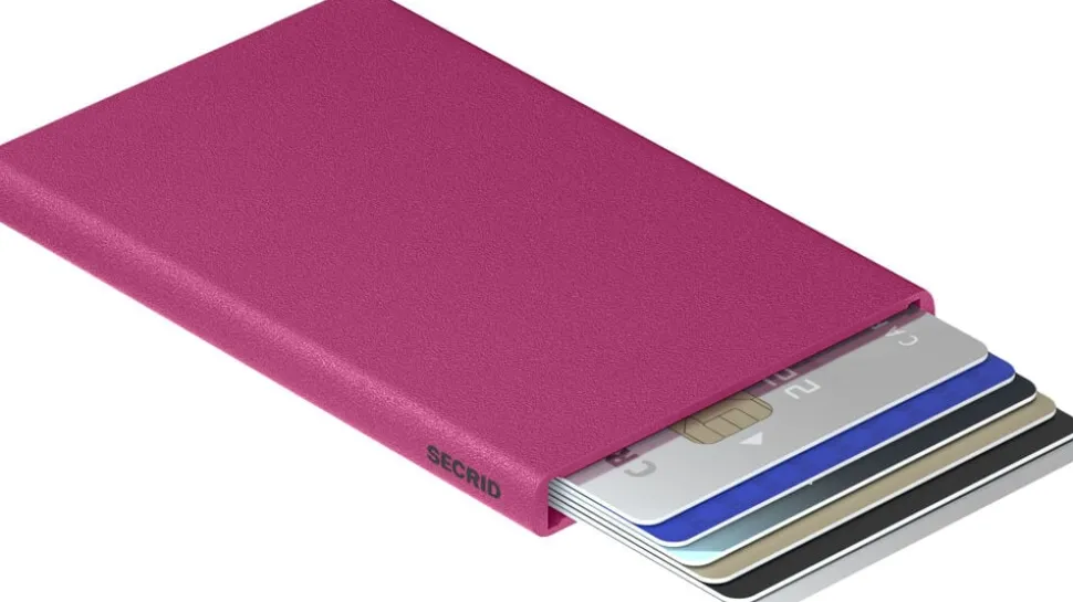 I denne cardprotector der har fået et overlay af powder – en kortholder der kan rumme 4-6 kort, der har et unikt touch og som er RFID sikker.