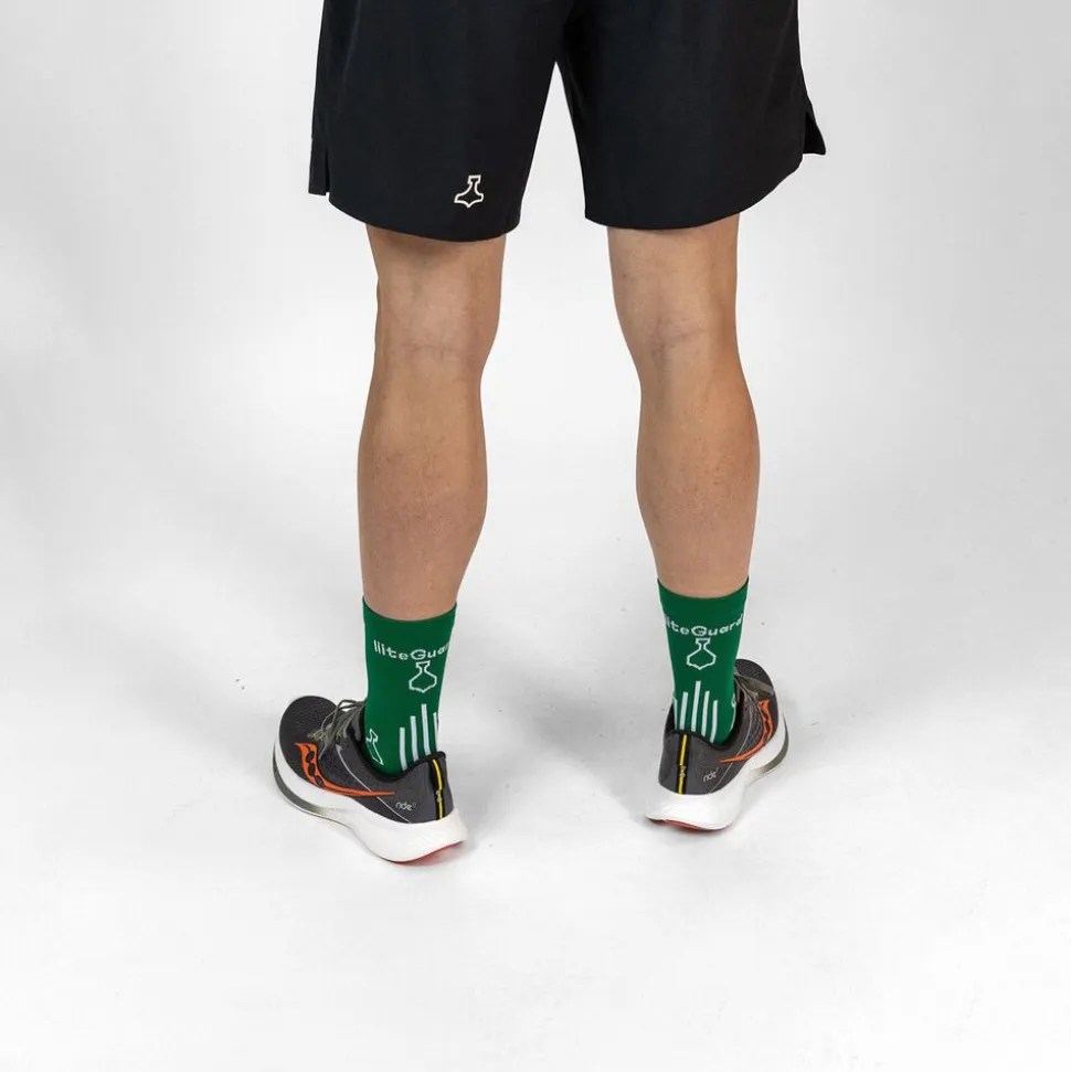 PRO-TECH STRØMPER fra liiteGuard giver dig optimal støtte og komfort til intense sportsaktiviteter. Med gradueret kompression forbedres blodcirkulationen, hvilket øger din præstation og hurtigere restitution. De små silikoneknopper omkring anklerne øger den sensoriske feedback, så du reagerer hurtigere ved retningsskift og mindsker risikoen for vrid. Ekstra kompression ved akillessenen reducerer smerter og hævelse under træning. Den skridsikre sål sikrer et solidt fodfæste i skoen, mens det svedtransporterende materiale holder dine fødder tørre og vabler på afstand. Perfekte til løb, fodbold, håndbold og padel.