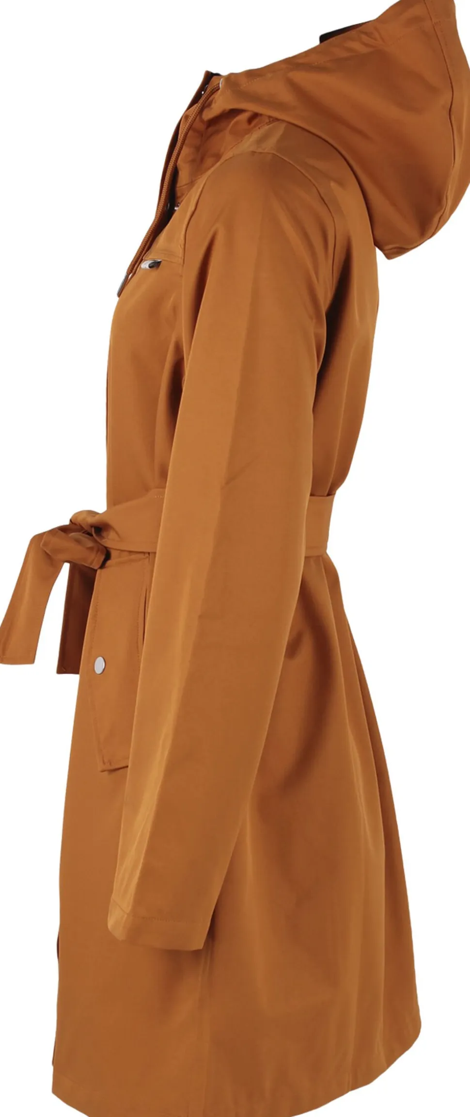 Den nye Rain Lover Rain Softshell er lavet i et virkelig fantastisk nyt regntøjsmateriale. Regnfrakken er i et blødt og stretchy materiale, der falder smukt og samtidig er ekstremt vandtæt (10. 000 mm) takket være en membran på bagsiden. Alle sømme er tapede, og så er regnfrakken naturligvis åndbar som alle Danefæs frakker. Det sikrer dig optimal komfort, når du bevæger dig i regnen. Regnfrakken har en enkel, lang og feminin pasform med bindebælte i livet. En dobbeltlynende vandtæt lynlås foran, der kan lynes nedefra og op, gør sammen med det elastiske materiale frakken dejligt cykelvenlig. Lynlåsen er dækket af et frontstykke, som lukkes med trykknapper. Regnfrakken har to skrålommer, der lukkes med trykknapper. Hætten har en lille skygge samt en god dybde med plads til en hue under. Hætten har snøre, så åbningen kan tilpasses ansigt og udsyn efter behov. Regnfrakken kan vaskes i maskine ved 30 grader. Generelt anbefales det, at man vasker overtøj mindst muligt. Brug i stedet en våd klud og luft eventuelt din frakke. FRAKKENS LÆNGDE: Målt fra skulder og ned, foran på frakken. XS 89 cm, S 91 cm, M 93 cm, L 95 cm, XL 97 cm, XXL 98 cm, XXXL 99 cm.