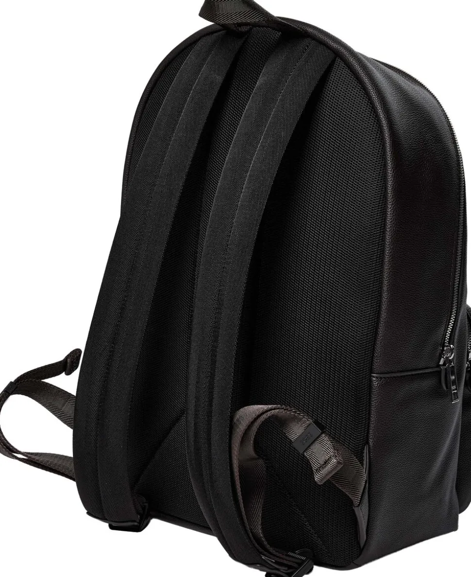 Denne rygsæk fra BOSS Menswear har en signaturstribedetalje og et præget logo og er fremstillet i syntetisk betrukket stof med en kornet tekstur. Justerbare skulderstropper. Syntetisk betrukket stof, undertiden benævnt faux læder, er et stof designet til at ligne ægte læder, og / eller vise en mat, skinnende, glat, eller tekstureret, belagt udseende. Mål: 42 x 28, 5 x 14 cm