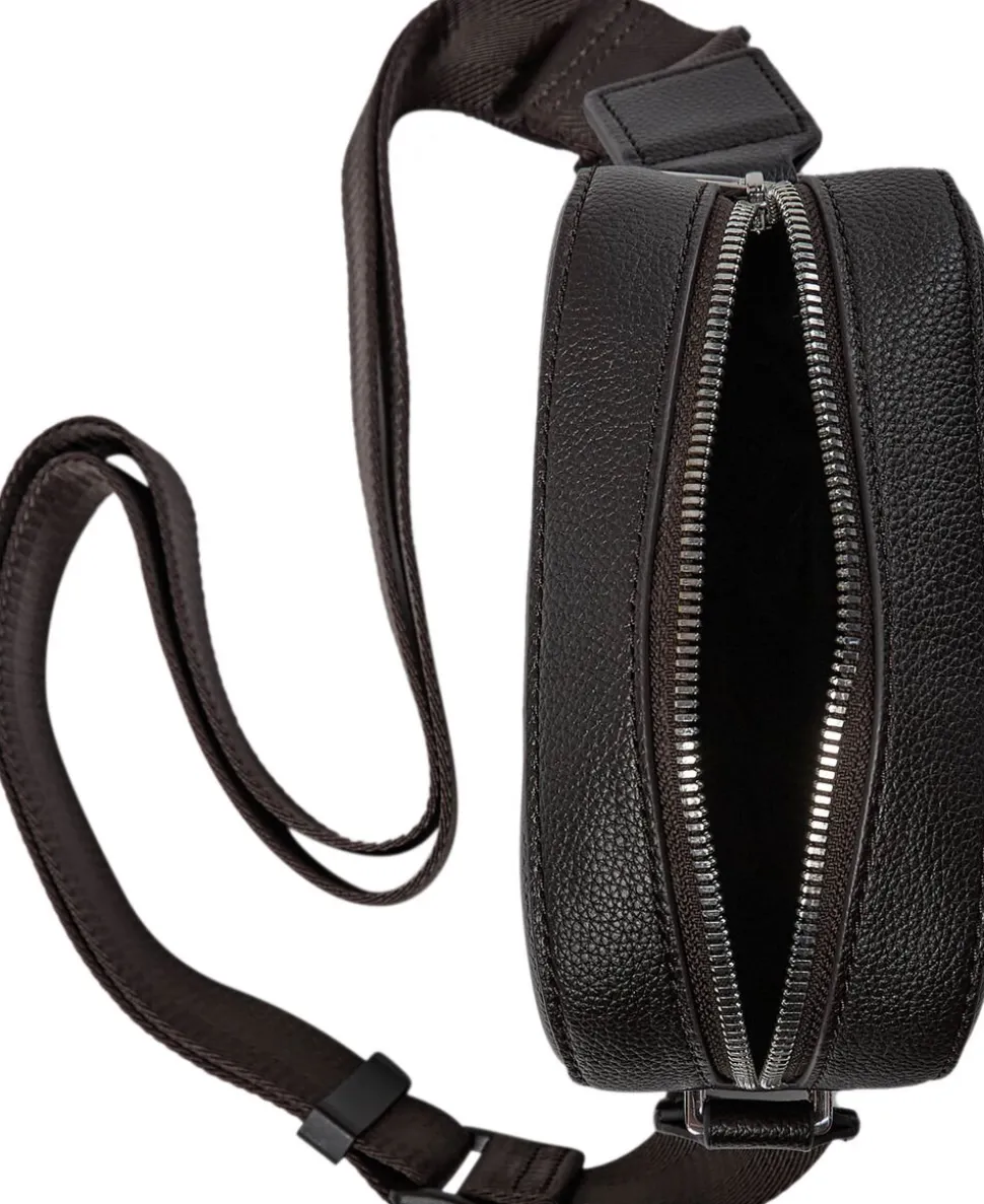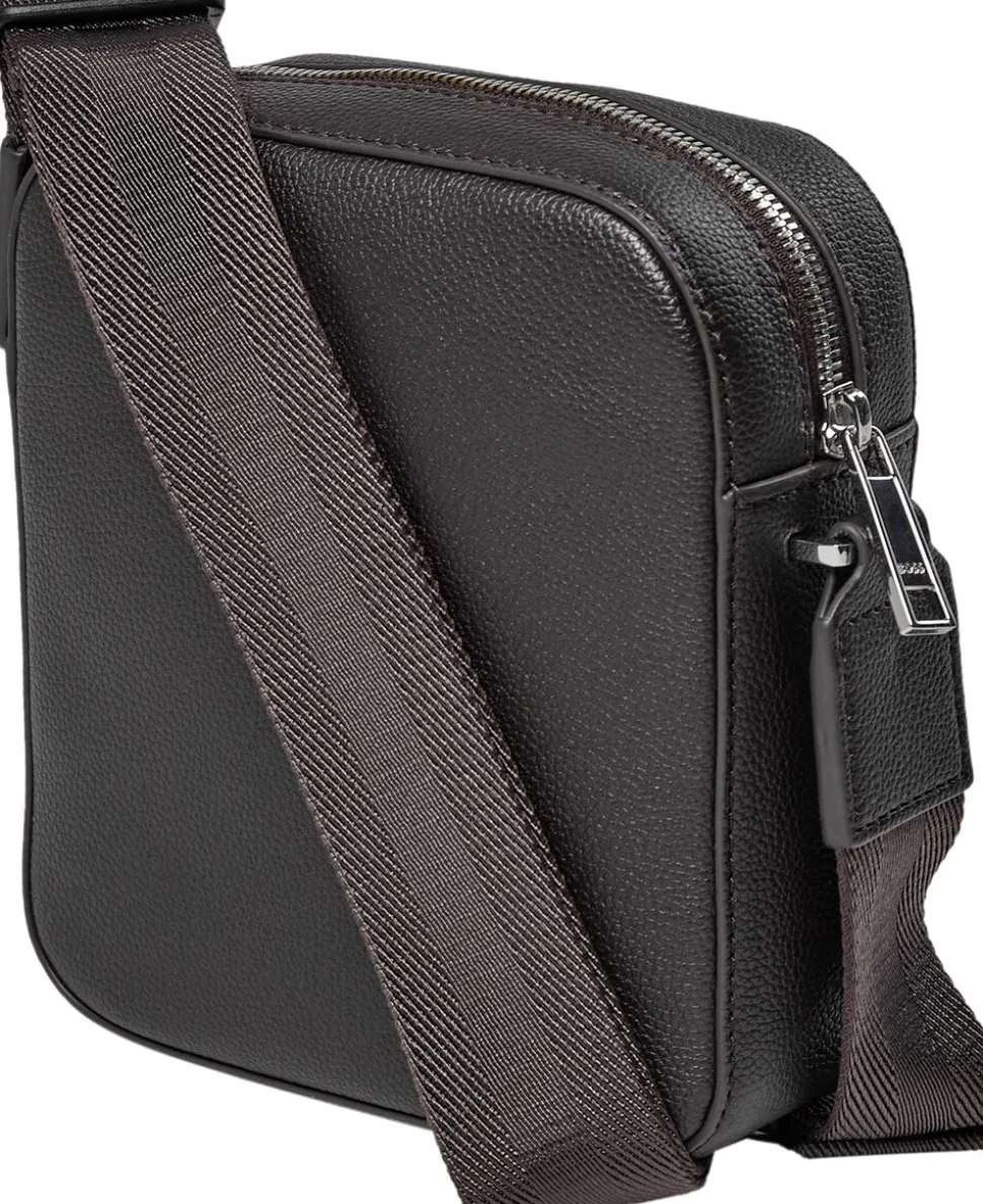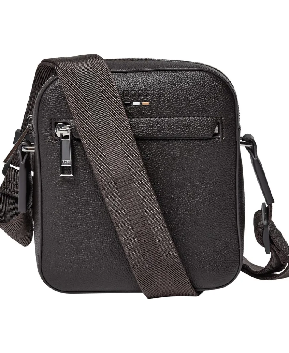 Denne taske fra BOSS Menswear i reporterstil i hverdagsstil er fremstillet i kornet materiale. Signaturstribe under et præget logo. Mål: 18 x 16 x 6 cm.