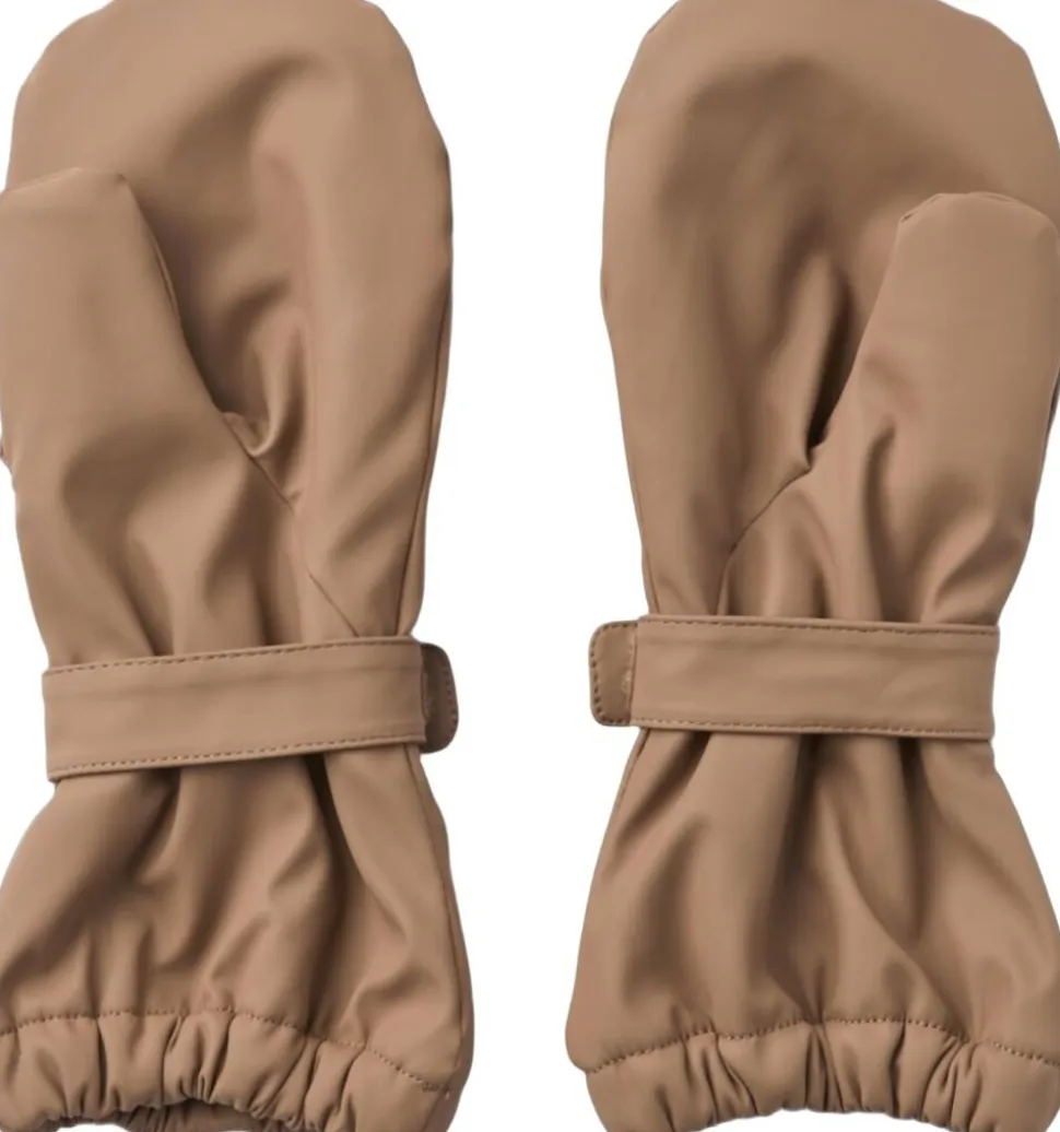 Praktiske vandtætte luffer med velcrostrop til dit barn. – Foret med blød fleece – Elastik ved manchet, så de lukker af for regn og slud – Justerbar velcrostrop omkring håndleddet – Refleksdetalje Wheat’s klassiske regnluffer er både behagelige og praktiske at have på. De er vandtætte og har et blødt fleecefoer, som gør dem perfekte til de evigt skiftende sæsoner. Regnlufferne har en justerbar velcrostrop om håndleddet for at sikre, at vanterne bliver på plads. Der er også elastikker ved kanterne, så de kan fastgøres udenpå overtøjets ærmer. — – Vandsøjletryk: 8. 000 mm – Alle sømme er vandtætte og svejset – PFC-fri – Fluorfri vand- og smudsafvisende finish (BIONIC FINISH ECO) – GRS-certificeret — Standard 100 by OEKO-TEX® 100% Genanvendt polyester med polyurethane coating Foer: 100% Genanvendt polyester