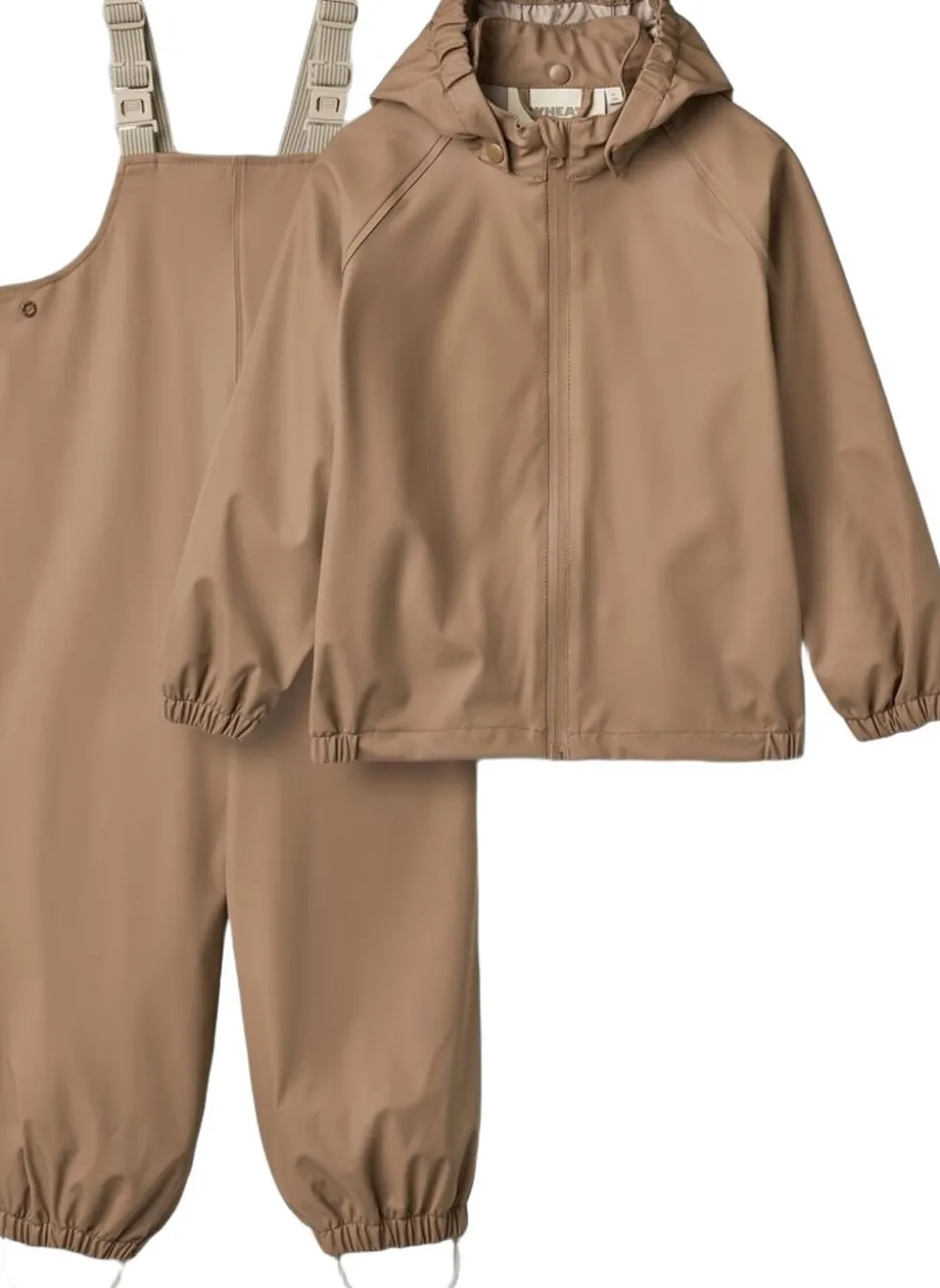 Ensfarvet regnsæt med matchende jakke og overalls til børn. – Normal pasform – Aftagelig og justerbar hætte – Lommer i sidesømmen – Elastik ved manchetter samt forneden i benene – Justerbare seler – Trykknapper i taljen, så bukserne kan justeres ind – Justerbare gummistropper under fødderne – Refleksdetaljer Dette praktiske regntøjssæt med matchende jakke og overalls bør være en væsentlig del af dit barns garderobe. Sættet er lavet i et superblødt og let materiale, der gør det behageligt for dit barn at have på og bevæge sig rundt i. Det er vandtæt og smudsafvisende, og er derfor nemt at rengøre med en våd klud efter en mudret eftermiddag på legepladsen. Regnjakken har aftagelig hætte, elastikker ved ærmerne og vandtæt lynlås med hagebeskytter. Bukserne har elastikker i benene samt justerbare elastiske seler for at sikre, at de bliver holdt på plads. Kombiner evt. regntøj med termotøj på de kolde dage for bedre isolering. — – Vandsøjletryk: 8. 000 mm – Svejsede sømme – Vandbaseret PU – Vandtæt coil lynlås – Fluor fri vand- og smudsafvisende finish – BIONIC FINISH ECO (Bio finish) – PFC-fri – GRS-certificeret — – Standard 100 by OEKO-TEX® – 55% Post Consumer polyester, 45% Vandbaseret polyurethane coatingPraktisk regntøysett med matchende jakke og bukser for det lille barnet. – Normal passform – Avtagbar og justerbar hette – Lommer i sidesømmen – Elastikk i kantene – Justerbare elastikkseler – Trykknapper i midjen for justeringer – Gummistropp for føttene – Reflekser Denne praktiske regntøysett med matchende jakke og bukser er en essensiell del av barnets garderobe. Settet er laget av et supermykt og lett materiale som gjør det behagelig for barnet ditt å ha på seg og bevege seg i. Det er vanntett og smussavstøtende og er derfor enkelt å rengjøre med en fuktig klut etter en gjørmete ettermiddag på lekeplassen. Regnjakken har en avtagbar hette, elastikk i mansjettene og vanntett glidelås med hakebeskyttelse. Buksene har elastikk i benkantene og justerbare elastikkseler for å sikre at de forblir på plass. Settet er tilgjengelig i vakre farger og håndtegnede trykk laget av Wheat’s sitt interne designteam og er enkelt å bruke med Wheat’s ulltøy under på kalde dager. — – Vanntett: 8. 000 mm – Sveisede sømmer – Vanntett glidelås – GRS certificeret — – Standard 100 by OEKO-TEX® – 55% Post Consumer polyester, 45% Vandbaseret polyurethane coating