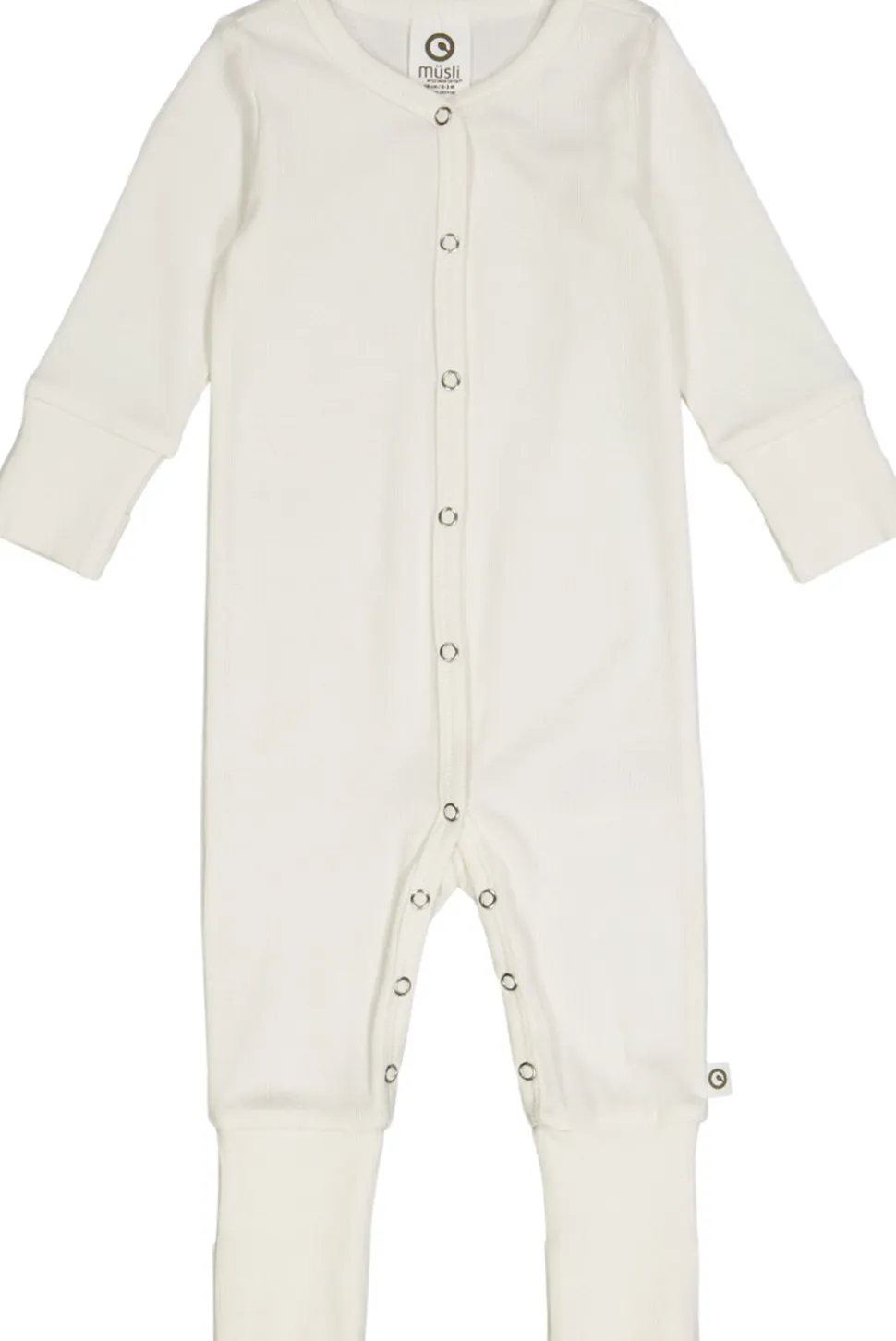 Skøn heldragt i blød blød rib kvalitet. Heldragten lukkes fortil med tryklåse og har vendbare fødder og hænder. Dragten er perfekt til de små for at sikre at de ligger lunt og trygt. De vendbare fødder og hænder kan foldes efter behov. Denne heldragt er fremstillet fra str. 44-74 og passer derfor til meget små babyer. Fremstillet i blød bomulds-rib med elastan for bedst mulig pasform. (GOTS Organic Certified by Ecocert Greenlife Lic. No. 152033). Produktet er GOTS organic- certificeret, hvilket betyder at bomulden er certificeret økologisk, og at der i alle andre processer som farvning, strikning og syning er taget de strengeste hensyn til miljøet. GOTS er internationalt anerkendt som den førende standard for forarbejdning af tekstiler af økologisk bomuld. Derudover tages der også hensyn til arbejdsforholdene, hos dem der producerer tøjet. Økologisk bomuld 95%, Elastan 5%