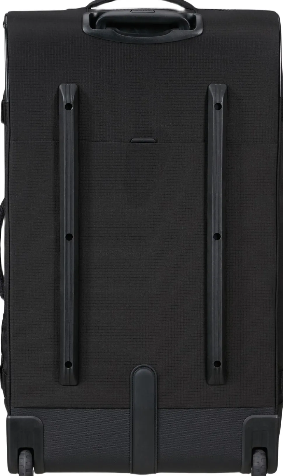 Rejsetaske med hjul, både det indvendige og udvendige stof er lavet af genbrugsplast, frontlomme med lynlås, TSA lås, indvendig krydsbånd og skillerum med lynlås, rumindhold 116 l, vægt 3,2 kg. 5 års garanti.