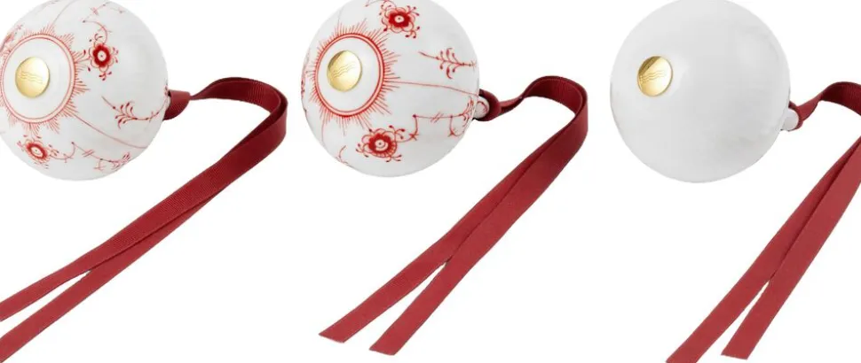 De tre julekugler, dekoreret i en levende rød nuance, er en elegant hyldest til Royal Copenhagens tidløse mønstre. Håndmalet i varme toner bringer de tradition og skønhed til juletræet. Perfekte alene eller som en del af en samling, der gør juletiden endnu mere magisk.