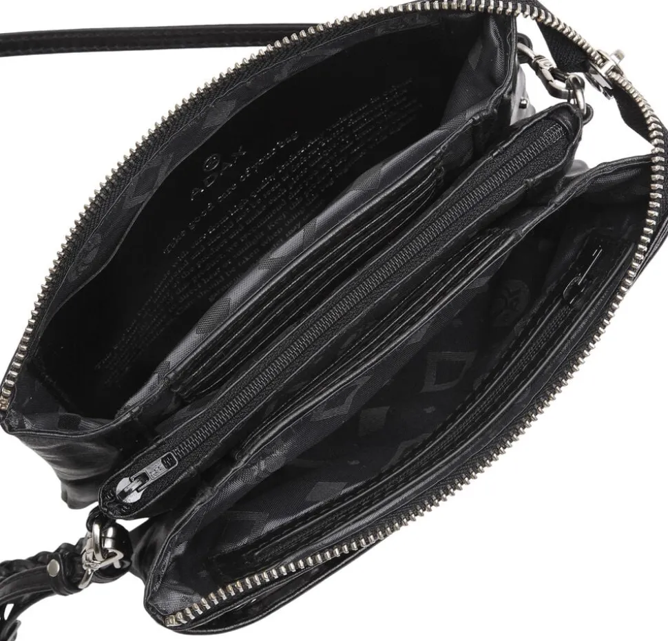 Adax kombi clutch i Salerno kalveskind. Clutchen har flere gode rum og plads til mange kort. Fantastisk rummelig model. Den er opdelt i midten af et rum der lukke med lynlås – kan evt. bruges til mønterne. Clutchen lukkes med en lynlås. Den aftagelige håndledsrem kan evt. bruges til nøgler.Vi anbefaler at Cormorano skindet plejes med Adax læder balsam. 20x12x3 cm