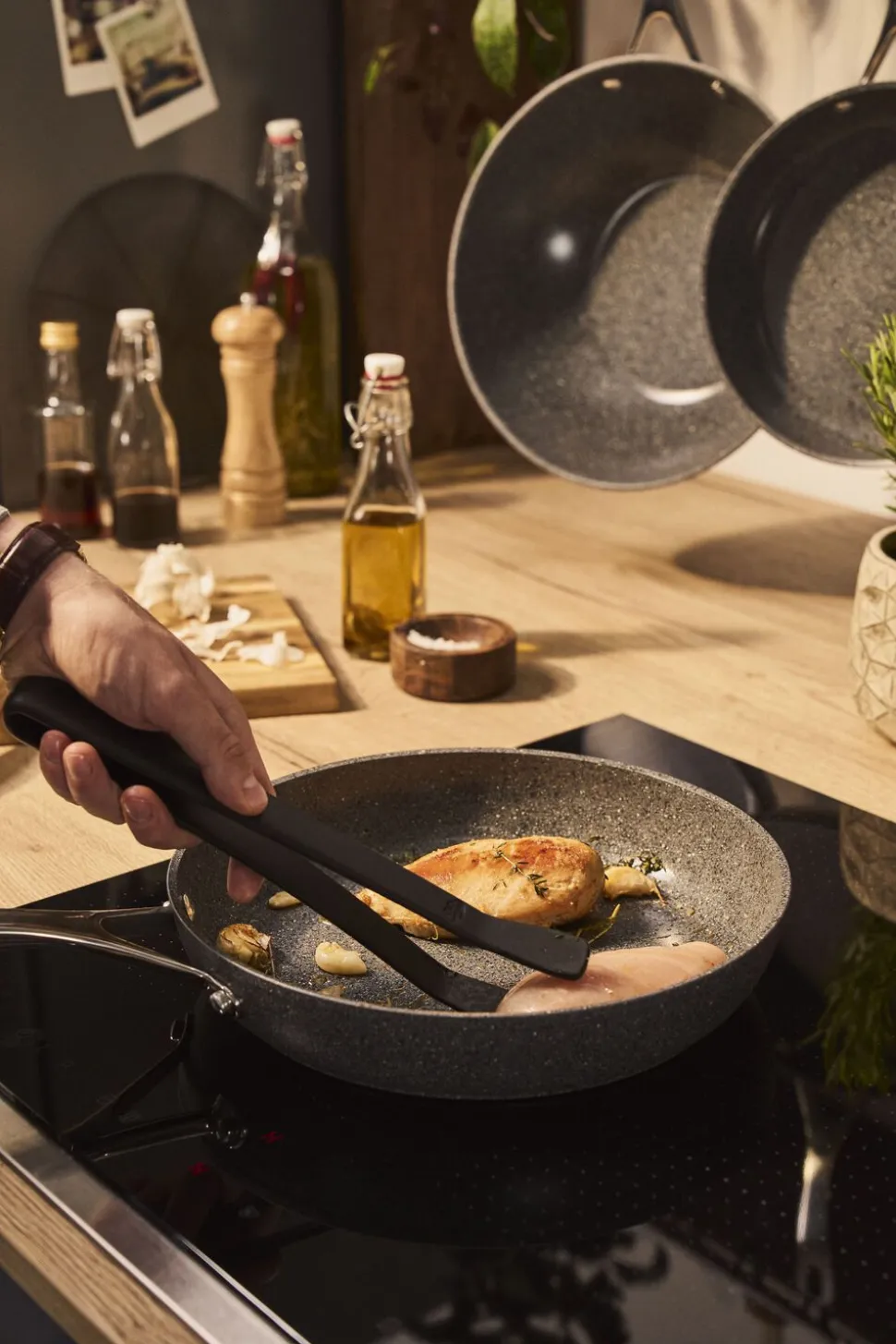 Mere robusthed for mere lethed. Med BALLARINI Salina stegepanden får du italiensk passion i dit Cucina. Det er den næste generations keramiske belægning garant for: CERAFORCE TITANIUM Udstyret med en ekstra robust basis af hård titanium er den op til fem gange mere holdbar end vores tidligere keramiske belægninger*. Samtidig giver den dig fremragende nonstick-egenskaber: Nu er det muligt at lave italienske lækkerier med mindre fedtstof. Især fordi den massive aluminiumskerne med innovativ Radiant-induktionsbund leder varmen særligt jævnt gennem den store pandebund. Det kølige håndtag i rustfrit stål med stay cool-funktion sikrer altid en behagelig og sikker håndtering. Molto bene!