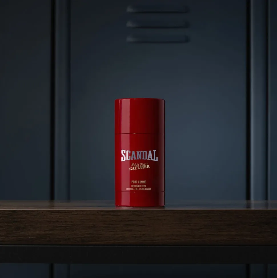 Med muskuløs elegance og boksehandskerne på: den nye Scandal Pour Homme af Jean Paul Gaultier giver en spektakulær og hårdtslående entré. Scandal Pour Homme Deodorant Stick er en let og nænsom stick, som effektivt giver en frisk følelse af velvære hele dagen. Sticken har en mild duft af den velkendte Scandal Pour Homme duft, der er sensuel, energisk og yderst vanedannende. Denne kontrastfyldte og vanedannende træagtige orientalske duft redefinerer karamel på en ny og cool måde. Hvordan det? I en harmonisk sammensmeltning af tonkabønner, salvie og vetiver, samt Jean Paul Gaultiers ekstravagante kendetegn, bliver denne atypiske sammensætning til en duft, der forfører sanserne på overraskende vis. Den yderst vanedannende og sensuelle blågrå juice gør, at han endnu engang sejrer! En stor slående duft, der er en sand Scandal.