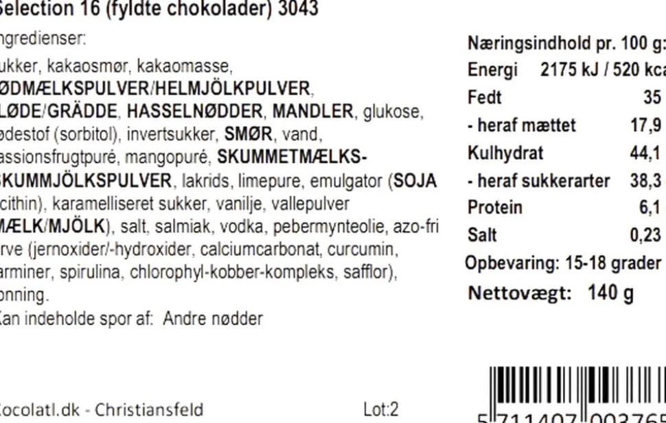 citron, lakrids, passionsfrugt, marcipan, mint og flødekaramel