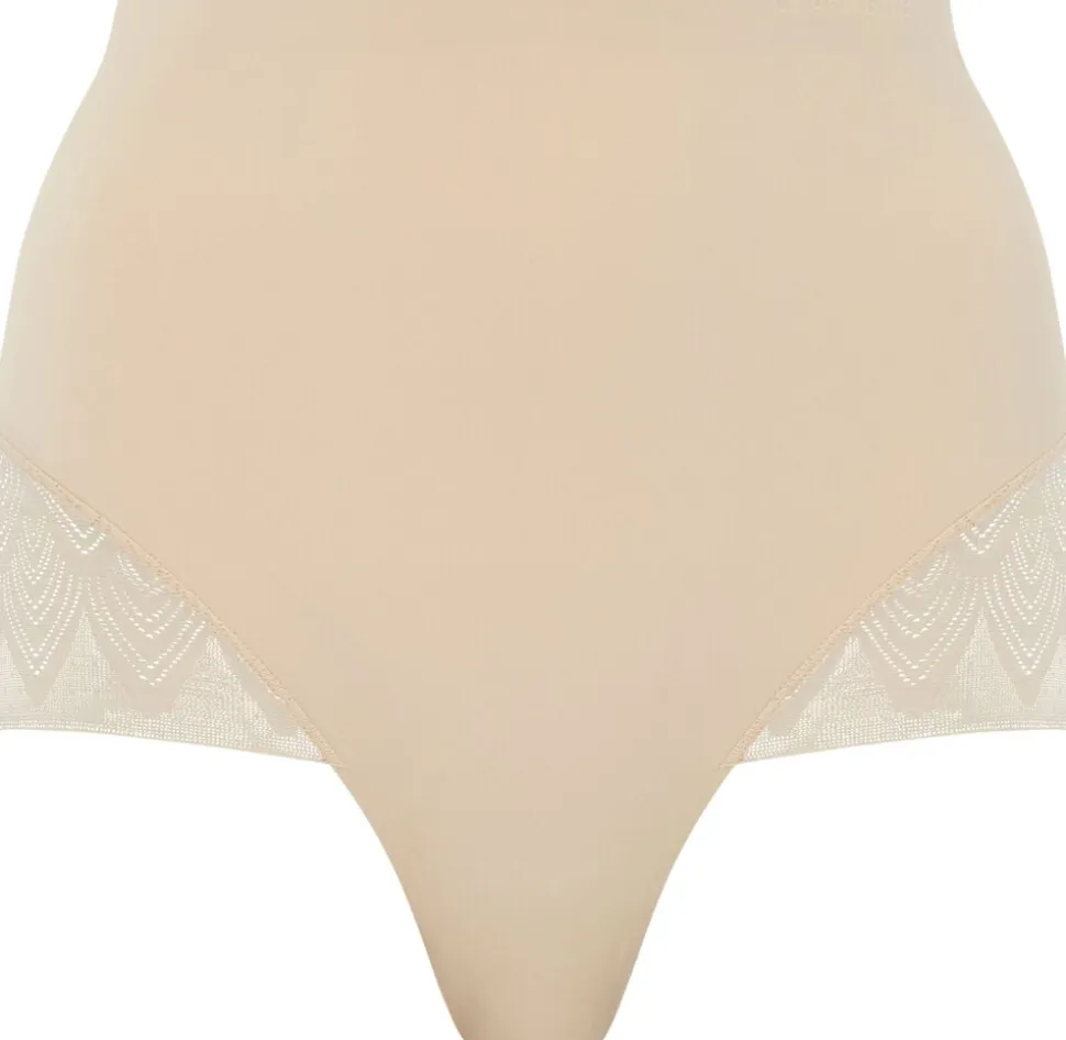 Moderne og feminin høj trusse med let opstrammende effekt på maven og hofterne pga. det faste materiale. Den smukke blonde bagpå trussen, gør den usynlig under tøjet, og efterlader ingen kanter.