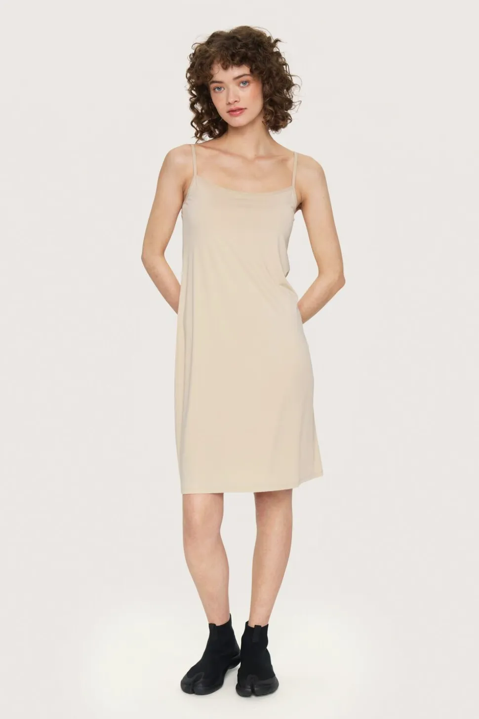 Basic jersey underkjole med regulerbare stropper. Underkjolen er af elastisk materiale, og former sig efter din krop. Den er helt perfekt under en transparent kjole.