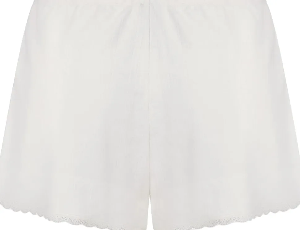 Hold dig komfortabel og stilfuld med vores shorts. Fremstillet i blødt pointellestof, har disse shorts et fint struktureret mønster, som giver et fint strejf til dit fritidstøj. Blondedetaljer løfter looket, mens den elastiske linning giver en sikker og behagelig pasform.