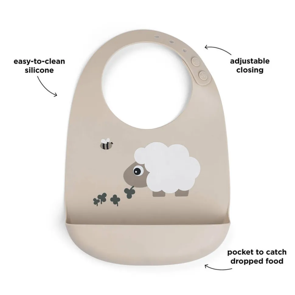 Hagesmækken har en lomme til at fange tabt mad