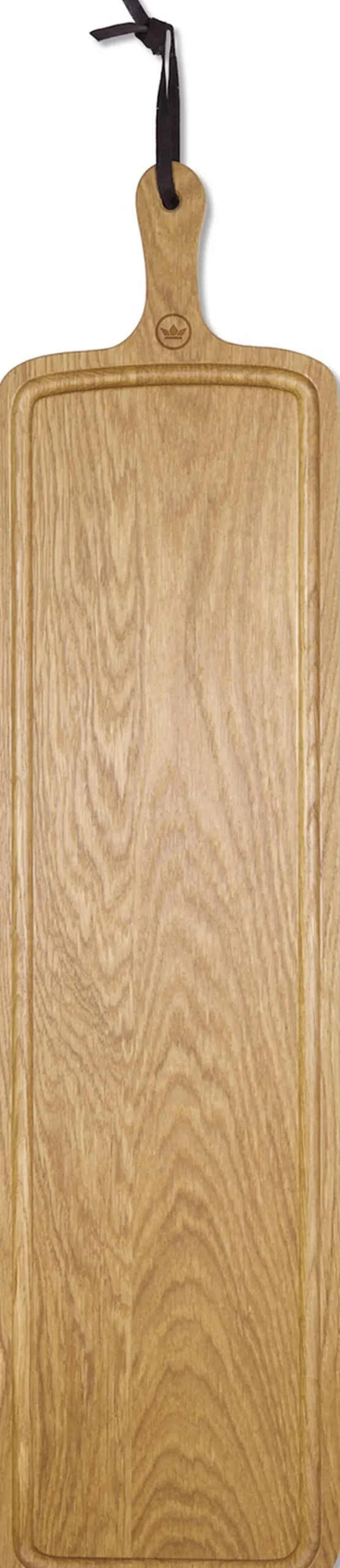 Er der noget, du vil fejre? Præsentér tapas eller bagværk på Slim Fit XL-træbrættet. Får dine snacks til at se endnu mere lækre ud. Nemt at bære, som en serveringsbakke. Servér for fire til seks personer. Dette 100 % massive egetræbræt er fremstillet i Holland og overfladebehandlet med vindruekerneolie og bivoks for optimal grundbeskyttelse. Oliér brættet en gang imellem, og du vil have glæde af det i årevis! XL Slim Fit er 19 x 80 cm [inkl. håndtag]. Fås også i massiv valnød, hård ahorn og i mange andre fantastiske XL-former og -størrelser.