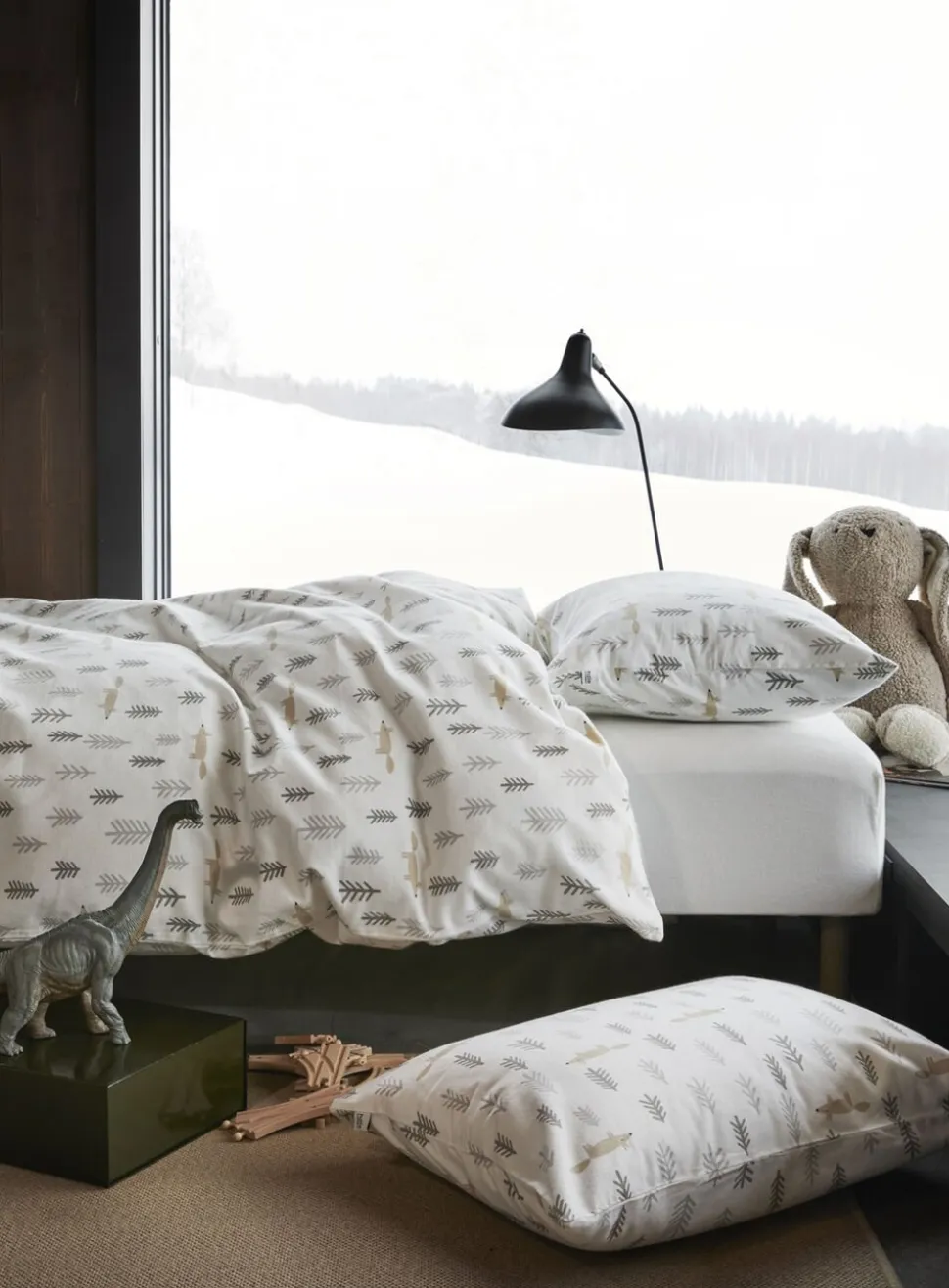 Høie Skvotur flonel sengesæt til baby, junior og store børn. Høies flonel er lavet af ekstra fin bomuld, som er børstet for at give den bløde og dejlige overflade. Børstningen gør, at stoffet føles behageligt mod huden og ser lunt, hyggeligt og indbydende ud. Flonelsengetøj isolerer og varmer godt, og egner sig yderst godt til de mørke og kolde efterårs- og vinternætter. Bundåbning med lynlås i dynebetræk. Pudebetræk med bundåbning. Oeko-Tex Made in Green certificeret.