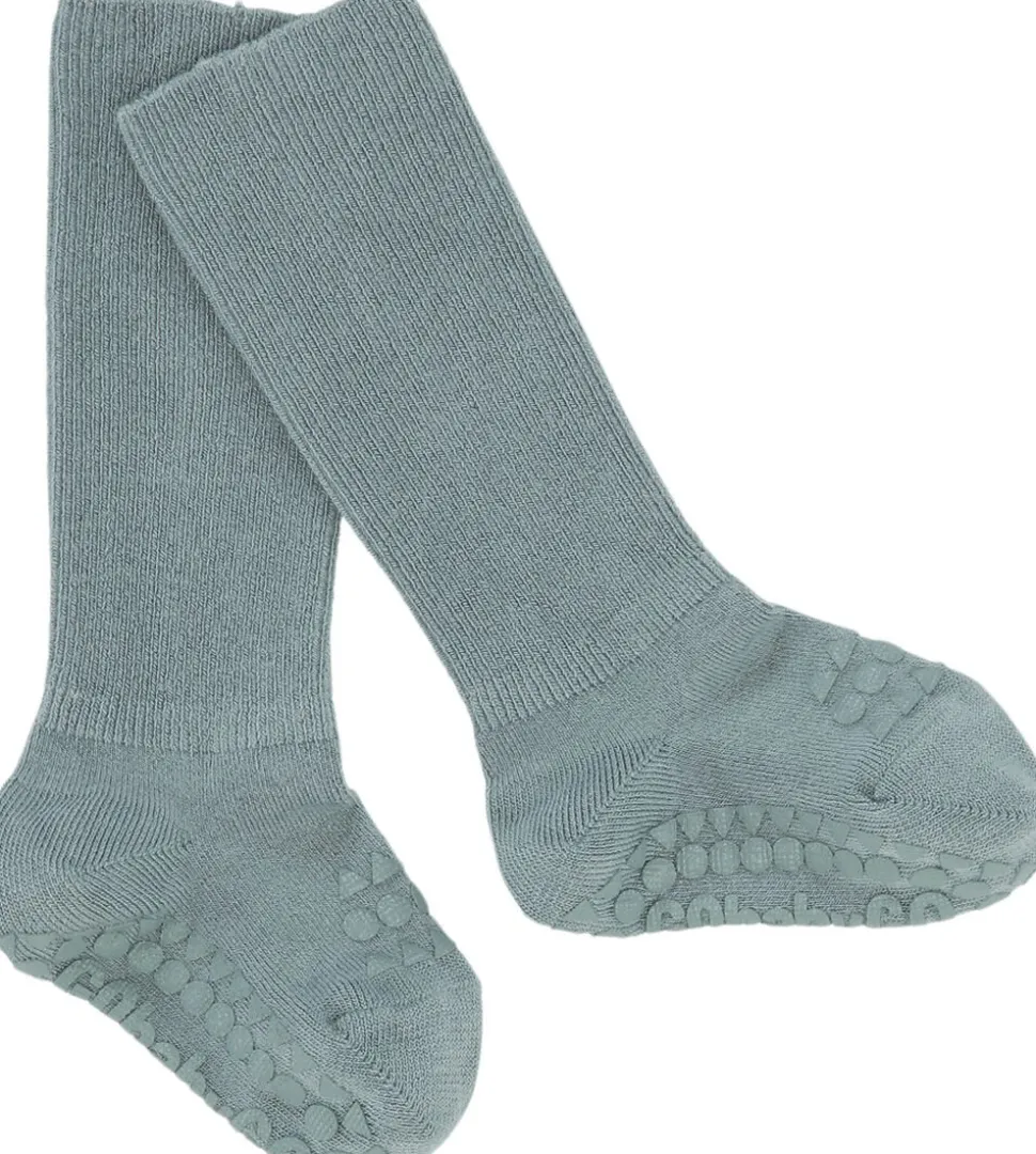 GoBabyGo skridsikre strømper i tynd bambus med skridsikre såler og gummidutter på tæer er til børn, der elsker at kravle, gå og løbe uden at glide. Styrker barnets motorik, balance og selvsikkerhed. Bambus materialet er meget blødt og føles som en kombination af silke og kashmir. GoBabyGo skridsikre strømper i bambus er derfor meget velegnet til sensitiv babyhud.Fordele:Gummi dutter under fødderne og ovenpå tæerne giver stabilitet på glatte overfladerLavet i tyndt, blødt bambus viskose, som er meget velegnet til sensitiv baby hudBambus er varmeregulerende og holder barnets fødder varme om vinteren og kølige om sommerenDesignet med langt skaft og ekstra rib om anklen så de sidder perfekt på små aktive fødderStyrker barnets motorik, balance og selvsikkerhedTestet og godkendt for sundhedsskadelige stofferDansk design produceret i Europa og Oeko-tex Standard 100 CertificeretBambus Materialet er varmeregulerende og holder barnets fødder varme om vinteren og kølige om sommeren. De skridsikre dutter styrker barnets motorik og giver det selvtillid til at være aktiv. Bambus er naturligt antibakterielt, 100% nedbrydeligt, vokser naturligt uden brug af pesticider og gødning og beskytter desuden huden mod skadelige UV-stråler. Skridsikre strømper i bambus fra GoBabyGo er derfor et godt valg til alle tumleglade børn.GoBabyGo skridsikre strømper i bambus er testet og godkendt for sundhedsskadelige stoffer og er Oeko-tex Standard 100 Certificeret.Oeko-Tex Standard 100 er en garanti for, at varen er kontrolleret for indhold af sundhedsskadelige kemikalier og der kun er brugt human-økologiske tekstilvarer, som ikke har skadelig effekt på menneskers sundhed og helbred. De skridsikre silikone dutter er også godkendt af denne standard.Produktinformation Materiale: 70% bambus bomuld, 27% Polyamid, 3% Elastan Størrelser: 6-12 måneder, 1-2år, 2-3år &: 3-4årDe skridsikre gummidutter er lavet af silikone og er fri for ftalater Vask på vrangen