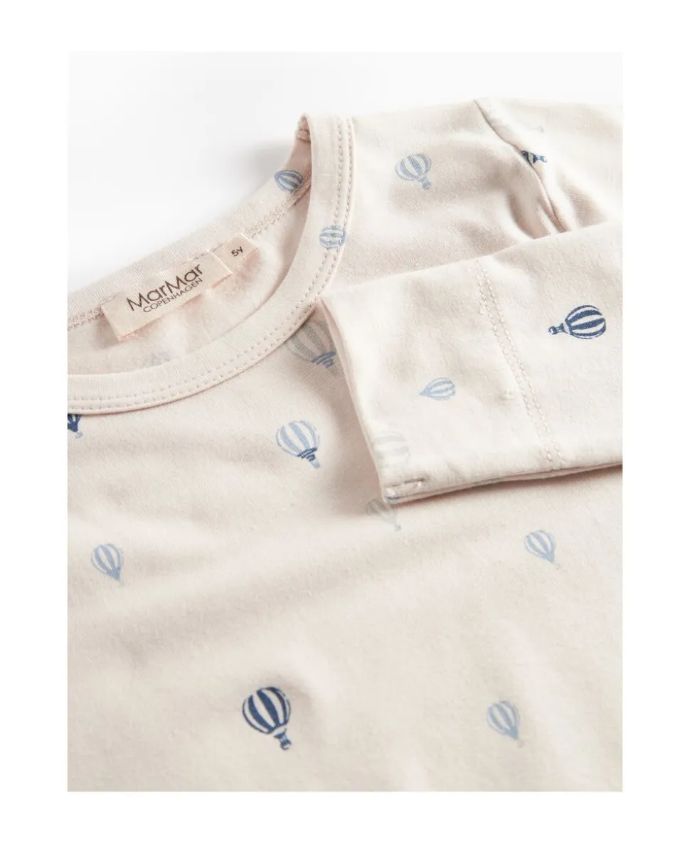 Langærmet baby modal bodystocking med stolpe knaplukning, der bliver lukket med trykknapper mellem benene for nem bleskiftning. Bodystockingen er både ribstrikket, blød, holder form og farve og har elastan i sig som gør den strækbar og behagelig at have på.