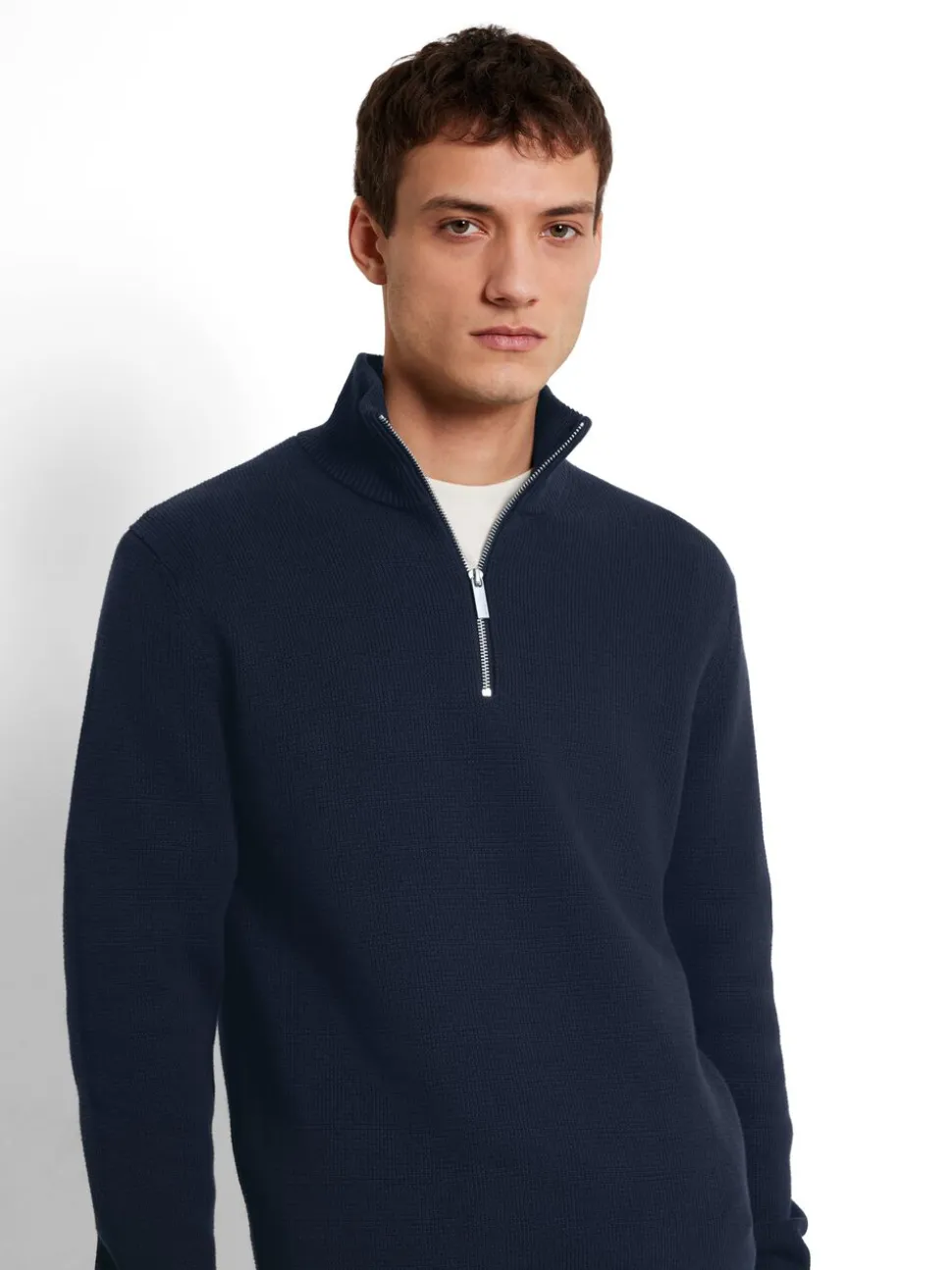 - Halsudskæring:Half zip