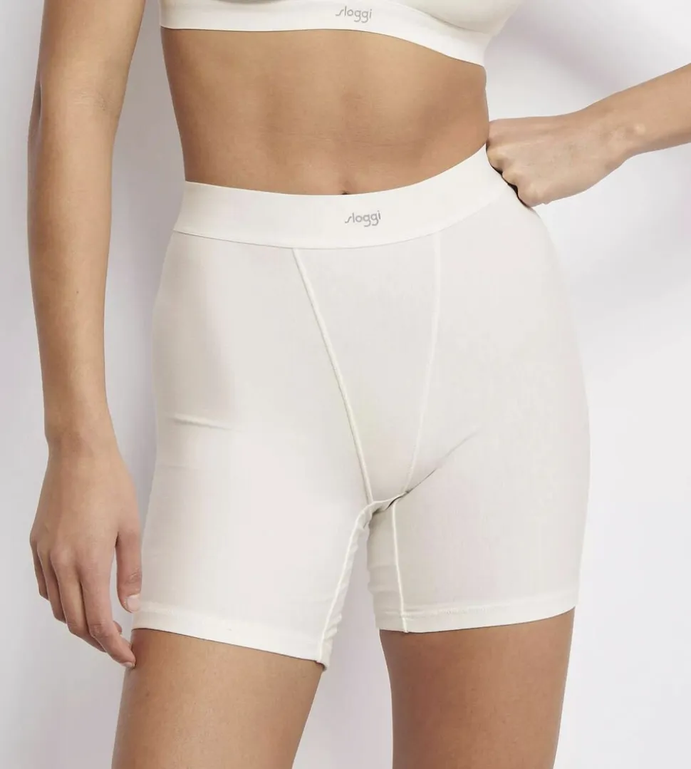 Sig farvel til svedige lår og irritation med disse EVER Ease Cyclist Shorts, lavet af blød, åndbar økologisk bomuld med smart HeiQ Smart Temp teknologi, der tilpasser sig din kropstemperatur for at holde dig kølig og tør på farten.