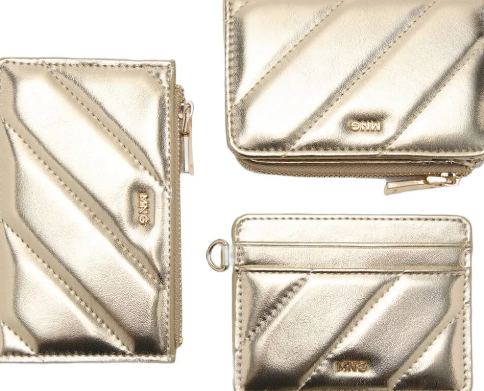 Lille størrelse, quiltet Design, metallisk Design, seks kortpladser på den ene side, lynlåslomme, flaplukning med trykknap.