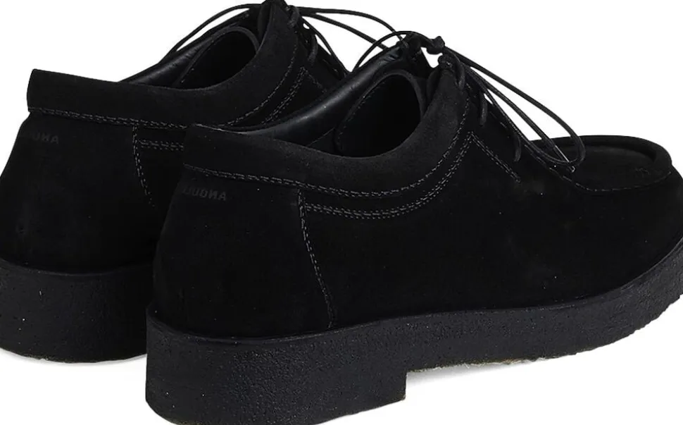 Skoen har en mandelformet snude, detaljestikninger, rand, fast hælkappe med polstret krave for ekstra støtte og komfort, præget logo ved hæl, vatteret indersål, kromfrit læderfoer og en blød og fleksibel sort rågummisål i fornybar naturgummi.