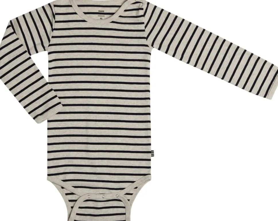 Body fra Mads Nørgaard-Copenhagen. Den har lange ærmer og trykknapper i kilen. En god basis body i 100% økologisk bomuld.