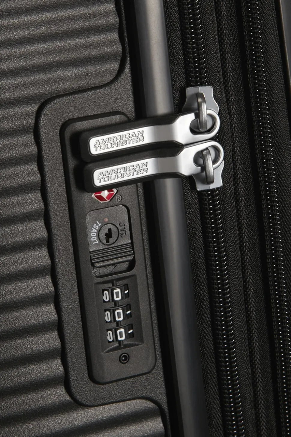 Kuffert lavet af slidstærk polypropylen, mulighed for udvidelse, indvendig stofforing med krydsbånd og lynlås lomme, Dobbelte hjul, TSA lås, rumindhold 71,5/81 L, vægt 3,7 kg. 3 års garanti.