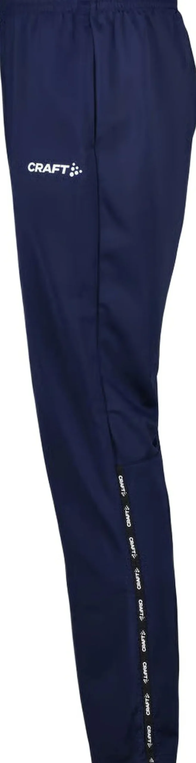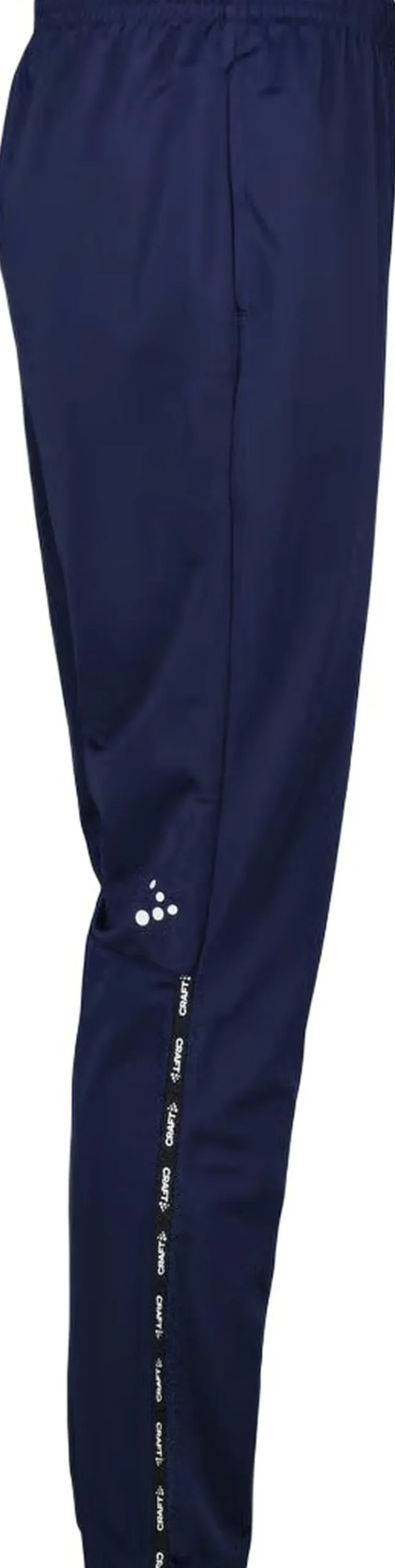 Squad Go Bukser – Perfekt til Træning og Holdaktivitet Disse funktionelle bukser fra Craft er designet til at give dig optimal komfort og bevægelsesfrihed under intense træningspas. Fremstillet af slidstærkt genanvendt polyester, sikrer de god fugttransport og en god passeform. Bukserne har en elastisk talje med snørebånd og to sidelommer, perfekt til at bære småting. De er ideelle til både træning og holdaktiviteter, og den rene design giver plads til logoer og personlige tryk.