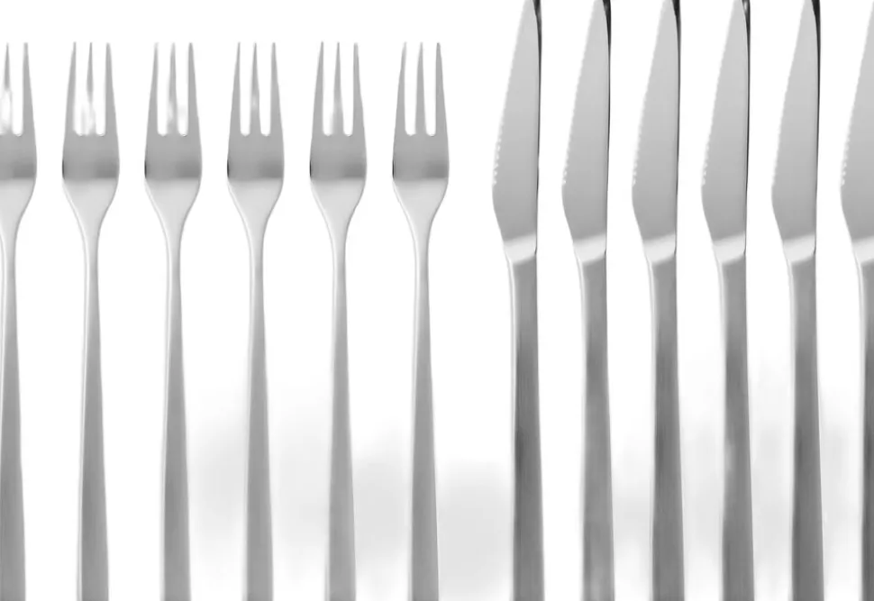 6 sæt kniv og gaffel. Genses bestik Fuga er ideelt til hverdagslivet såvel som til festlige lejligheder. Fuga har et klassisk design med blødt afrundede linjer, der hviler behageligt i hånden. Tias Eckhoff formgav det ikoniske bestik i 1962, der i sit design formidler klarhed og præcision, men med et subtilt udtryk.