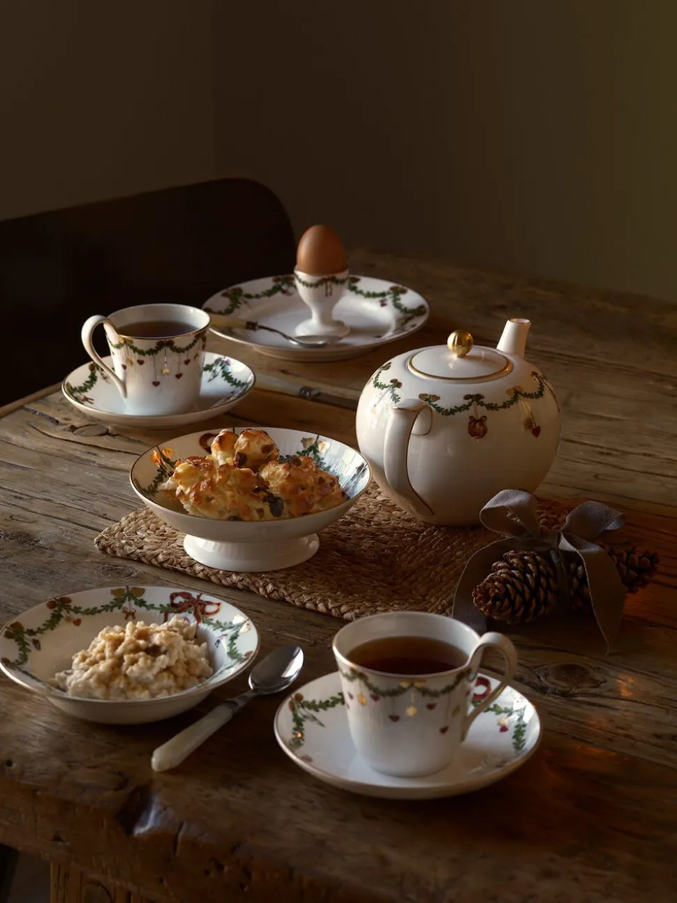 Blandt julens smukke traditioner hører julestellet fra Royal Copenhagen. På tallerkener, skåle og kopper snor granguirlanderne sig højtideligt, dekoreret med elegante silkesløjfer og det fineste pynt. Stjerne Riflet Jul skaber stemning og gør julen til noget helt særligt ? generation efter generation. Hver eneste steldel er et smukt stykke julepynt i sig selv, og når bordet står dækket og lysene er tændt, så bliver det helt sikkert jul igen.