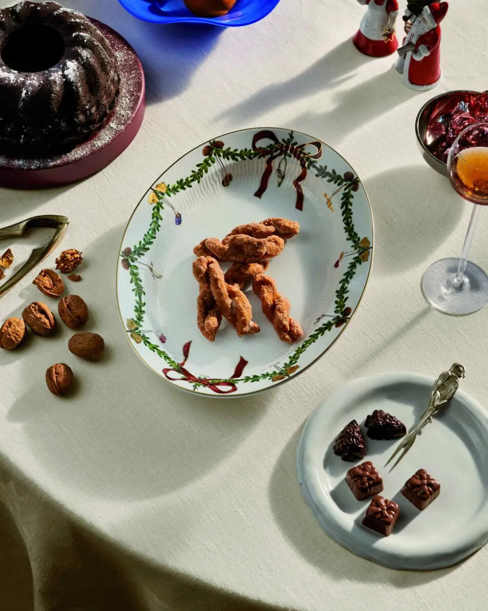 Stjerne Riflet Jul-kollektionen har fået sit navn fra relieffet fra 1783, der blev brugt til at opnå de stjernemønstrede fløjter på overfladen. Det 34 cm store stjernemalede fad har lidt højere kanter end dets 37 cm modstykke. Et perfekt fad til din julemiddag eller på et hvilket som helst tidspunkt i december for at forlænge julestemningen.