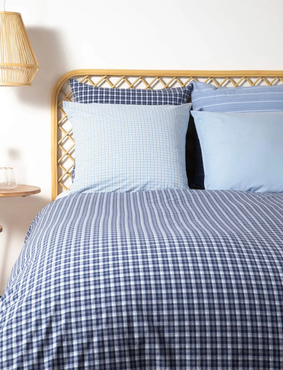 Stonewashed sengesæt fra Magasin du Nord Collection har et moderne design med kraftige dobbeltstikninger i kanterne og et vasket, let rustikt udtryk. Der følger to hovedpudebetræk med.